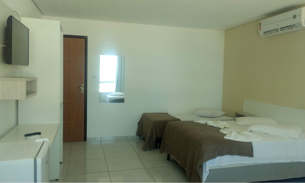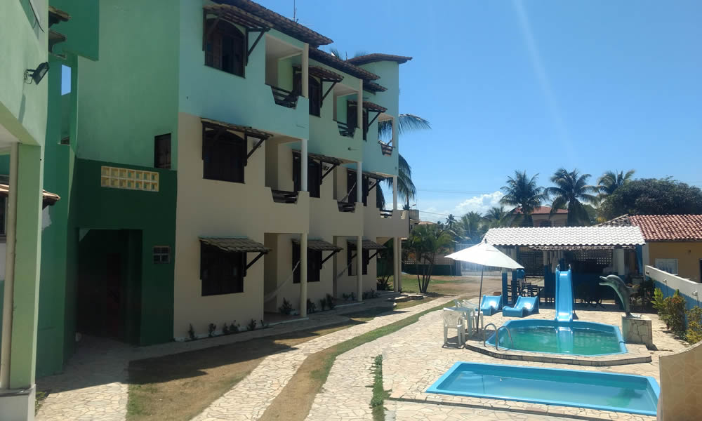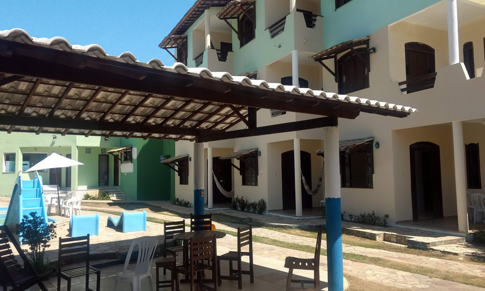 São apartamentos confortáveis, decorados e espaçosos, que dispõem de ar condicionado, tv de led, frigobar, varandas com redes, armário, banheiro com blindex e água quente, área verde com piscina adulto e infantil, toboágua, serviços de bar, restaurante e café da manhã tropical incluso na diária, recepção 24hs, estacionamento fechado, wi-fi e segurança